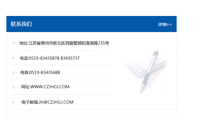 傳真:0519-83435688    郵編:213135    網址:WWW.czjhgj_com.bjkxxf.com    電子郵箱:JH@czjhgj_com.bjkxxf.com
